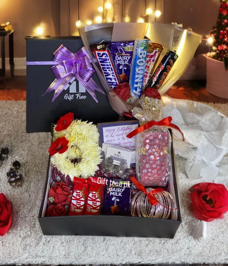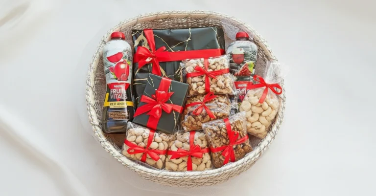 ThisΒ wedding gift basket Pakistan includes a selection of mithai, dates, and dry fruits